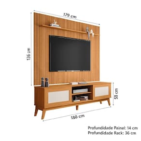 Certifique-se de tudo antes de finalizar a compra, evitando assim futuros desagrados ou imprevistos com a . MEDIDAS PAINEL:: A = 136 cm L = 179 cm P = 14 cm | MEDIDAS PRATELEIRA:: A = 1,2 cm L = 136 cm P = 12 cm | MEDIDAS RACK:: A = 58 cm L = 180 cm P = 36 cm | MEDIDAS DOS PÉS:: A = 22 cm L = 6,5 cm P = 2,5 cm | ACOMODA TV ATÉ:: 75 polegadas | PESO SUPORTADO PELO PAINEL:: 32,8 Kg | PESO DO PAINEL:: 26,39 Kg | PESO DO RACK:: 26,45 Kg | MARCA:: EDN | ACABAMENTO:: Pintura UV | MATERIAL DO PAINEL:: MDP | MATERIAL DO RACK:: MDP/MDF | ESPESSURA DO MATERIAL DA ESTRUTURA:: 12 e 15mm | PORTAS:: 2 | TIPO DE PORTA:: Correr | PRATELEIRAS:: 2 | PES:: 5 | MATERIAL DOS PÉS:: MDF | GARANTIA:: 3 meses pelo fabricante | DIFERENCIAL:: Tampo do Rack em MDF com borda laqueada, porta deslizante com acabamento em moldura e tela Rattan sintética, painel com detalhe ripado 3D, prateleiras, trilhos em ABS, produto acomoda TV, receptores e objetos decorativos. | ITENS INCLUSOS:: 1 Rack Bancada, 1 Painel, 1 manual de Montagem e 1 Kit de ferragens | INSTRUÇÕES/CUIDADOS:: Para maior durabilidade, recomendável que a limpeza dos móveis seja feita com pano limpo e levemente umedecido em água e sabão neutro. Em seguida, deverá ser passado um pano limpo e seco. | AVISO:: A Esplanada Móveis se responsabiliza pela dos produtos adquiridos até a porta de entrada ou portaria do endereço indicado, se a portaria do condomínio permitir, as s são efetuadas no piso térreo e é de responsabilidade do cliente a locomoçã | COR:: Cedro | MODELO:: Rack Bancada Cairo Com Painel Para TV Até 75 Polegadas 1,79m Avante Ripado Impressão 3D | TONALIDADE:: Marrom | PRODUTO:: Rack e Painel | TAMANHO:: Alto | FORMATO DE MOVEL:: RACK COM PAINEL | QUANTIDADE DE CAIXAS DE EMBALAGEM:: 2 Cor: Cedro