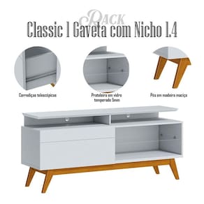 Rack Bancada Classic 1 Gaveta com Nicho 1.4 Branco Acetinado - Imcal