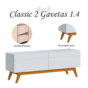 Rack Bancada Classic 2 Gavetas 1.4 Branco Acetinado - Imcal