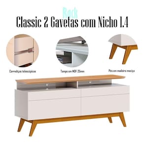 O rack da linha Classic 1.4 é uma peça elegante e funcional, perfeita para organizar e exibir seus objetos de forma sofisticada. Com duas gavetas espaçosas equipadas com corrediças telescópicas, proporcionando um deslizamento mais suave e silencioso ao abrir e fechar. Os dois nichos oferecem um amplo espaço para colocar seus aparelhos eletrônicos. Fabricado pela Imcal, é desenvolvido em MDP/ MDF com materiais de alta qualidade garantindo mais robustez e longevidade. Seus pés em madeira maciça dão mais estabilidade e um toque de sofisticação ao móvel. Com linhas limpa e acabamento impecável, será ideal para quem busca uma peça versátil, que une beleza e praticidade. Confira e garanta o seu!
