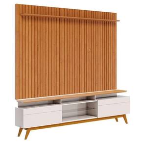 MDP/MDFRack Bancada Classic 2 Gavetas com Nicho e Painel para TV Suspenso Ripado Loft 2.2 Off White Nature - Imcal
