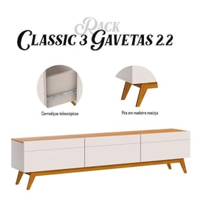 Rack Bancada Classic 3 Gavetas 2.2 Off White Nature - Imcal