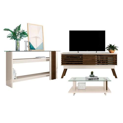 Rack Bancada com Aparador e Mesa de Centro Frizz 1.5 Off White Savana – Madetec