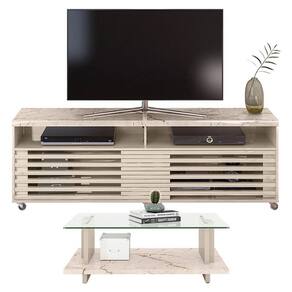 Rack Bancada com Mesa de Centro Frizz Cross Calacata Off White – Madetec