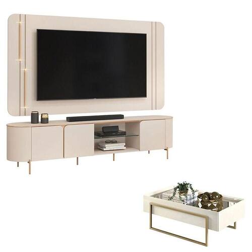 Rack Bancada com Painel Ariana e Mesa de Centro Suri Off White DJ Móveis