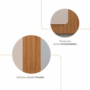 Painel Suspenso Roma 217cm para TV até 60 - Casa D Estrutura em MDP e MDF Pintura UV Painéis laterais frisados Cantos arredondados dos painéis frontais Produto desenvolvido para ser fixado na parede O televisor deve ser fixado no painel Possui passa-fio Ideal para TV até 60