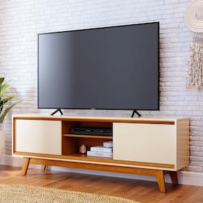 O Rack Bancada de 70 Pol 164cm Gaia M01 Off/Cinamomo, da Mpozenato, combina funcionalidade e sofisticação para transformar sua Sala de Estar.