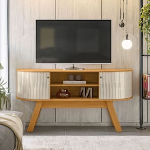 O Rack Bancada de TV 55 Pol 136cm Alana M01 Off/Cinamomo, da Mpozenato, combina design sofisticado e praticidade para transformar sua Sala de Estar.Com 2 portas deslizantes, esse Rack de TV oferece um visual moderno e elegante, permitindo fácil acesso aos aparelhos e organização do ambiente. Os detalhes chanfrados na base e no tampo adicionam um toque refinado, enquanto os pés usinados proporcionam estabilidade e facilitam a limpeza. Produzido em MDP, o Rack garante resistência e durabilidade, perfeito para suportar TVs de até 55 polegadas. Além disso, conta com uma prateleira para organizar itens adicionais, otimização de espaço com estilo e funcionalidade.Não perca tempo, adicione agora mesmo o Rack Bancada ao carrinho e renove seu espaço!