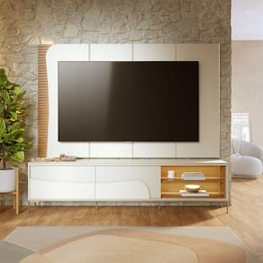 Rack Bancada e Painel Amalfi para TV até 65 Polegadas com Pés de Metal Off White Freijó Colibri - Off White | Freijo