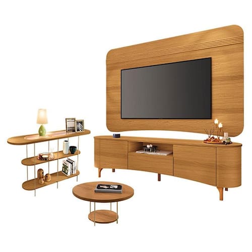 Rack Bancada Elara e Painel Armony Cinamomo com Mesa de Centro Sky e Aparador Infinity Cinamomo - HB Móveis