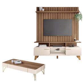 Rack Bancada Essenza e Painel Link 1.6com Mesa de Centro Cadenza Off White Castanho – HB Móveis