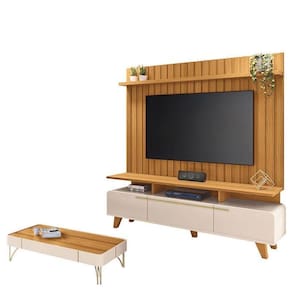 Rack Bancada Essenza e Painel Link com Mesa de Centro Cadenza Off White Cinamomo HB Móveis