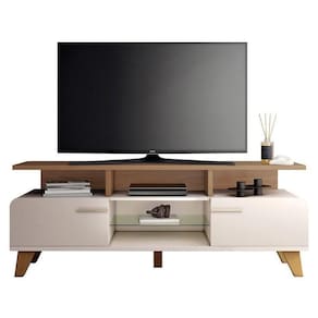 Rack Bancada para Sala Essenza Off White Castanho HB Móveis