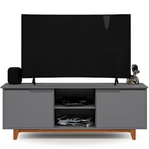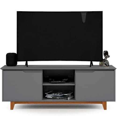 Rack Bancada Flow Cinza Com design orgânico e linhas suaves, o Rack Bancada Flow é a escolha perfeita para quem deseja compor ambientes modernos com leveza e sofisticação. Seu visual contínuo e proporções equilibradas valorizam a estética minimalista e o conforto parte superior, o tampo em MDF usinado possui acabamento refinado que destaca o relevo e a textura, integrando beleza e portas, também em MDF usinado, mantêm o padrão elegante e dispensam puxadores aparentes, reforçando o visual clean do mó base conta com estrutura de pés em madeira maciça, que oferece estabilidade, resistência e um toque natural ao conjunto.Internamente, o espaço é amplo e funcional, ideal para armazenar eletrônicos, objetos decorativos e itens do dia a modelo ainda traz como diferencial a régua dupla face, que facilita a organização e passagem de cabos com ões:Altura: 55 cmLargura: 139 cmProfundidade: 46,5 cmObservações:- Design sem puxadores aparentes, com visual limpo e sofisticado - Tampo e portas em MDF usinado, com acabamento detalhado - Estrutura dos pés em madeira maciça, com excelente resistência - Amplo espaço interno para armazenamento e organização - Régua dupla face inclusa para passagem de cabos