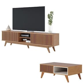Rack Bancada Fortaleza Freijó com Mesa de Centro Jeri Freijó Off White- Colibri