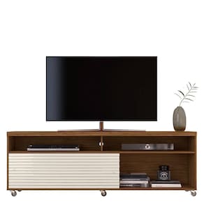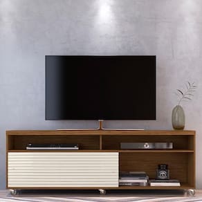 Rack Bancada Frizz 1.8 Naturale/off White Com Rodízios Para Tv Até 65 - Madetec Naturale/off White Rack Bancada Frizz 1.8 com Rodízios para TV até 65 - Madetec O Rack Bancada Frizz possui a modernidade em sua essência. Com grande presença no móvel, as portas deslizantes que se sobrepõem dão o realce necessário que o diferencia e o torna um verdadeiro espetáculo. Além das portas, o móvel ainda conta com rodízios de silicone que facilitam a movimentação e ajuda muito na hora da limpeza, e tampo de 40mm que transmite robustez e suporta TV de até 65 sobre ele. ESPECIFICAÇÕES: - Estrutura em MDP - Pintura UV - 2 Portas frisadas deslizantes que se sobrepõem - Puxadores em poliestireno cromado - Tampo de 40mm - Rodízios de silicone - Ideal para TV até 65