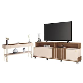 Rack Bancada Graci 1.8 com Aparador Vivant Castanho Off White – HB Móveis