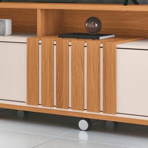 O Rack Bancada Graci é a escolha perfeita para TV até 70, oferecendo uma solução prática e estilizada para o seu espaço de entretenimento. Com duas portas de correr equipadas com trilho em alumínio, o acesso aos compartimentos é suave e eficiente. Os puxadores em poliestireno, com design exclusivo e acabamento dourado, acrescentam um toque sofisticado ao móvel. O detalhe ripado confere um charme adicional, enquanto o tampo com espessura de 25mm proporciona robustez e durabilidade. Equipado com rodízios cromados de 50mm, o Rack Bancada Graci oferece mobilidade conveniente para adaptar-se às necessidades do ambiente. Fabricada com precisão em MDP e MDF de 25mm e 15mm, esta peça alia estilo e funcionalidade para complementar qualquer espaço de maneira elegante.