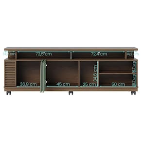 A Bancada Jurerê é uma peça contemporânea e elegante, destacando-se pelos apliques ripados decorativos e pela porta de quina assimétrica usinada. Seu tampo com detalhes suspensos adiciona sofisticação, enquanto o nicho espaçoso com duas portas oferece praticidade para aparelhos e decorações. Com amplo espaço para TVs de até 75 polegadas, a Bancada Jurerê é a escolha perfeita para transformar seu ambiente com estilo e funcionalidade.
