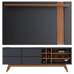 Rack Bancada Noronha 1.8 com Painel para Tv Suspenso Extensivo Leme Preto Acetinado Noce Milano - Colibri