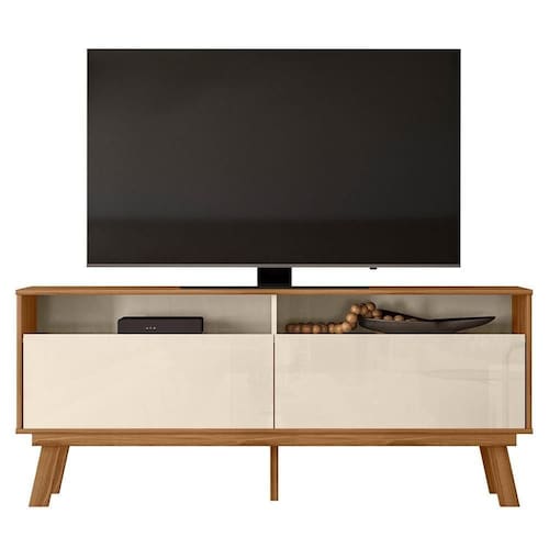 Rack Bancada Olinda 160cm Amêndoa/off White Para Até 65 - Mobler Amêndoa/off White