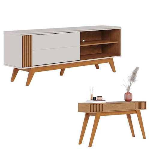 Rack Bancada Otawa Off White Freijó com Aparador Riviera Freijó – Colibri