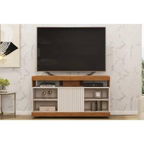 Rack Bancada p/ TV até 50 Pol Dili 120x67cm Freijo/Off White - DJ Móveis