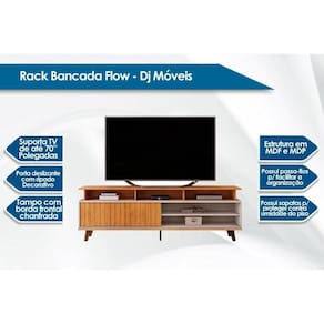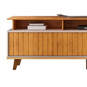 Rack Bancada p/TV até 70 Polegadas Flow Ripado c/ Nichos e Pés 180x60cm Cedro/Bali - DJ Móveis