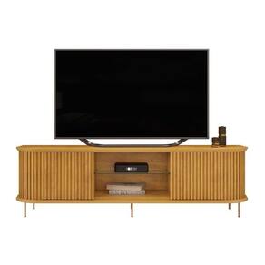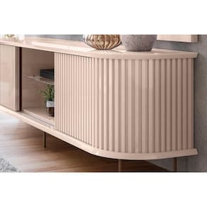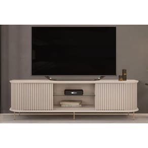 Rack Bancada p/TV até 75 Pol Atlas 100% MDF c/ Ripado e Pés 218x62cm Off White - DJ Móveis
