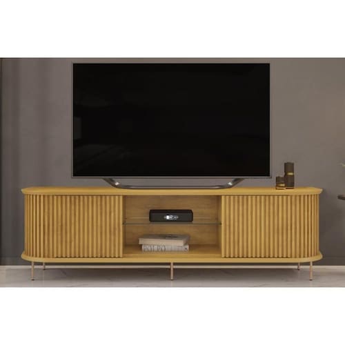 Rack Bancada p/ TV até 75 Pol Atlas 100% MDF Ripado c/ 2 Portas 218x62cm Cedro - DJ Móveis
