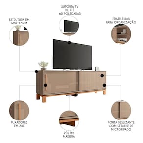 Rack Bancada Para 65 Pol 180cm Lucca Areia/Freijó C01 - MpozenatoA Bancada para de até 65 polegadas é uma escolha incrível para quem deseja aliar Design Sofisticado e funcionalidade em sua Sala De Estar, ela traz um estilo robusto com acabamentos em cores naturais, proporcionando um ambiente repleto de elegância e requinte. Perfeita para quem busca um item que combine com diferentes estilos, elevando a estética de qualquer espaço. O Rack Bancada oferece o equilíbrio perfeito entre estilo e praticidade, possuindo duas portas deslizantes. Uma das portas conta com o acabamento microripado, dispensando o uso de puxador, trazendo um toque moderno e clean, enquanto a outra possui puxador em ABS. O espaço interno com prateleiras internas que oferecem espaço para armazenar itens diversos de forma eficiente. Essa Bancada é ideal para espaços maiores, graças ao seu design que oferece nichos exclusivos para acomodar objetos de decoração e garantir a exposição de peças que dão um toque personalizado ao ambiente. Além disso, ela possui espaço dedicado para acomodar eletroeletrônicos e outros dispositivos, garantindo que fique não só bonito, mas também funcional. Se você busca beleza, praticidade e sofisticação, adicione a Bancada para em seu carrinho de compras e transforme sua sala de estar em um ambiente mais elegante e organizado. ESPECIFICAÇÕES Dimensões do ProdutoLargura: 180 cm. Altura: 61,9 cm. Profundidade: 37,9 cm. Peso: 39,3 Kg. Características do ProdutoMaterial da Estrutura: MDP 15mm. Peso Suportado: 30 kg Distribuídos. Acabamento: Pintura UV. Escala de Brilho: Brilho/Fosco. Suporta de até: 65 Polegadas. Possui Prateleiras: Sim. Quantidade de Prateleiras: 2 Prateleira. Possui Portas: Sim. Quantidade de Portas: 2 Portas. Tipo de Porta: Deslizantes. Possui Gavetas: Não. Possui Puxador: Sim. Material do Puxador: ABS. Possui Nicho: Não. Possui Pés: Sim. Material dos Pés: Madeira. Diferenciais:- Design moderno.- Puxador na cor dos pés, em ABS.- Porta com detalhe microripado.Sistema de Montagem: Cavilhas/Parafusos/Minifix. Manual de Montagem: Sim. Complexidade da Montagem: Média. Volumes: 1 Volume. Conteúdo da Embalagem: 1 Rack. do Fabricante: 90 dias contra de fabricação. Montagem: Recomendamos que seja feita por um . Recomendação de Limpeza: Utilize pano levemente úmido. Observações importantes:- Produto para uso residencial em ambiente interno, não devendo ficar exposto diretamente ao sol, calor e umidades excessivas.- Pode haver alguma diferença de tonalidade entre a imagem e o produto real, por conta do tratamento de imagens e a calibração de cores do seu monitor.- As imagens são meramente ilustrativas, não acompanham objetos de decoração e eletrônicos.- Ao receber a mercadoria, o cliente deve verificar as condições da embalagem, caso haja algum não assine o de .- Montagem, desmontagem e outras instalações serão de responsabilidade do cliente. Não nos responsabilizamos, no ato da , por subir escadas/elevadores ou pelo por guincho em apartamentos. Eventuais despesas são de responsabilidade do comprador.- Confira as dimensões do produto e certifique-se de que passará normalmente por supostos elevadores, portas, escadas e/ou corredores de sua residência.