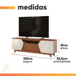 Importante sobre a : A é realizada até a portaria ou porta de entrada do indicado, desde que o acesso seja permitido. Para locais com portaria, a será feita no piso térreo. Não realizamos montagem, desmontagem, por escadas ou içamento. É responsabilidade do cliente verificar se as dimensões do produto são compatíveis com portas, elevadores e corredores. Evite imprevistos: confira todos os detalhes antes de concluir sua compra. MEDIDAS:: A = 61 cm L = 183 cm P = 38,5 cm | MEDIDA PÉS:: A = 15 cm | MEDIDAS NICHOS:: A = 27,5 / 13 cm L = 45 / 86,8 / 179,8 cm P = 38,5 cm | NICHOS SUPORTAM ATÉ:: 5 kg | PRATELEIRA SUPORTA ATÉ:: 5 kg | PRODUTO SUPORTA ATÉ:: 40 kg | PESO:: 38,25 kg | IDEAL PARA DE ATÉ:: 75 Polegadas | MODELO:: Rack Bancada Para Até 75 Polegadas 1,83m 4 Portas Frisado Heloisa | COR:: Off White/Madeirado | MARCA:: DJ Móveis | PINTURA:: UV de alta qualidade, 8 camadas | ACABAMENTO:: Melamina | MATERIAL DA ESTRUTURA:: MDP/MDF | ESPESSURA DA ESTRATURA:: 12 e 15mm | PORTAS:: 4 | TIPO DE PORTA:: 2 batere 2 deslizantes | PUXADORES:: Cava | PRATELEIRAS:: 1 | PÉS:: 4 | MATERIAL DOS PÉS:: MDP/MDF | ESPAÇO PARA PASSAR FIOS:: Sim | DIFERENCIAIS:: Design moderno e elegante / Pintura UV de alta qualidade, 8 camadas, mais resistência / 2 portas deslizantes e 2 portas com dobradiças com amortecimentos / 4 nichos amplos para maior armazenamento interno / Suporta de até 75. | INSTRUÇÕES E CUIDADOS:: Para maior durabilidade, recomendável que a limpeza dos móveis seja feita com pano limpo e seco. Não usar produtos químicos ou abrasivos. | GARANTIA:: 3 meses pelo fabricante. | AVISO:: Importante sobre a : A é realizada até a portaria ou porta de entrada do indicado, desde que o acesso seja permitido. Para locais com portaria, a será feita no piso térreo. | Altura: 61 cm | Formato do móvel: Rack | Inclui manual de montagem: Sim | Largura: 183 cm | Profundidade: 38,5 cm | Quantidade de caixas de embalagem: 1 | Requer montagem: Sim | Altura da embalagem: 95 cm | Comprimento da embalagem: 52 cm | Largura da embalagem: 18650 cm | Peso da embalagem: 39250 cm | Tipo da embalagem: sem embalagem adicional | Cor: Off White / Madeirado