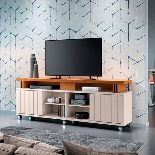 Rack bancada para Sala Ambiente Rivera 1.8 Off White Cinamomo HB Móveis