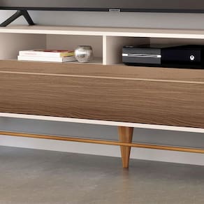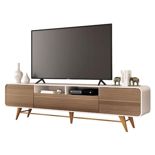 Rack Bancada para Sala Época Off White Castanho – HB Móveis