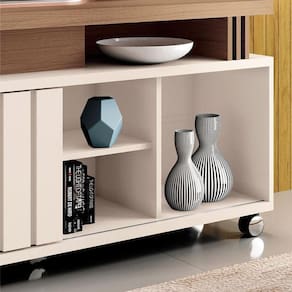 Rack Bancada para Sala Rivera Off White Castanho HB Móveis