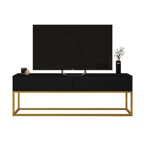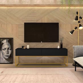 Rack Bancada Para Sala Tv Ate 50 Polegadas Preto/Dourado - Preto