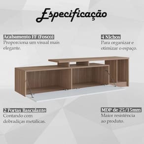 Rack Bancada Para TV 50 Pol 2 Portas B91, uma peça sofisticada e moderna, ideal para deixar seu ambiente cheio de personalidade. Tampo robusto produzido em MDP de 25mm e estrutura da peça em MDP de 15mm. Contando com acabamento FF (Fosco), proporcionando maior durabilidade e resistência ao produto. Composta por 2 Portas do tipo Basculante com dobradiças metálicas e 4 Nichos com amplo espaço, oferecendo um local perfeito para armazenar objetos com praticidade. Suportando até 10 kg os tampos e 5kg cada nicho. Ideal para TV de até 50 Polegadas. Perfeito para adicionar elegância e funcionalidade a sua sala de estar. Este móvel chegará na sua casa separado em 1 volume.