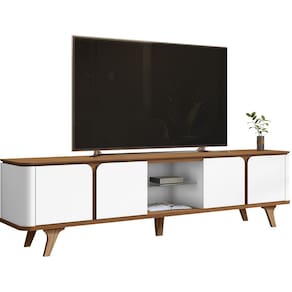 Transforme sua sala em um ambiente sofisticado e funcional com o Rack Bancada. Com 217 cm de largura e elaborado em MDF e MDP, o design cuidadosamente projetado conta com pés em madeira maciça que conferem estabilidade e um toque clássico, 04 portas de MDF usinadas, com detalhes curvos que enriquecem o visual, além de dobradiças metálicas para um fechamento suave e silecioso e maior durabilidade. A base e laterais usinadas com cantos curvos, proporcionam um acabamento sofisticado e moderno. Possui amplo espaço interno, perfeito para guardar objetos e manter sua sala organizada, além de 01 prateleira de vidro de 6mm, ideal para acomodar aparelhos eletrônicos com segurança. Suporta TVs de até 60 polegadas. Este móvel chegará em sua casa separado em 01 volume.