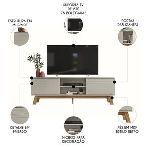 Rack Bancada Para TV 75 Pol 180cm Dulce Off White Z49 - Mpozenato
