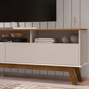 O Rack Elegant da Bechara condiz exatamente com essa proposta, uma ótima alternativa para centralizar sua sala de estar. Confeccionado em MDP, ele conta com acabamento em pintura UV e pés de madeira que compõem um estilo retrô. Além disso, também apresenta 2 portas basculantes com amplo espaço interno e nichos para aparelhos decorativos ou objetos de decoração. Ah, e suporta TV de Até 65 Polegadas!