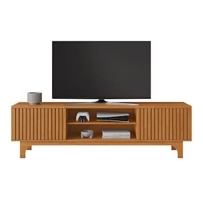 O(a) Rack Bancada para TV Até 70 Polegadas Bruxelas 2 Portas 1 Prateleira Ripado Cinamomo - Pnr Móveis é produzido em MDF e MDP na escala de brilho Fosco, e possui um grau de dificuldade de montagem: Médio.