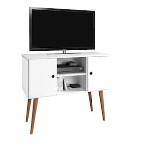Rack Bancada Retro TV Até 40 Polegadas Com Portas Nichos E Pés Em Madeira Viena