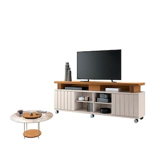 Rack Bancada Rivera 1.8 com Mesa de Centro Sky com Tampo de Vidro Cinamomo Off White – HB Móveis