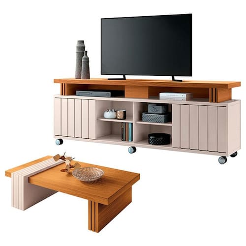 Rack Bancada Rivera 1.8 e Mesa de Centro Luna Off White Cinamomo – HB Móveis