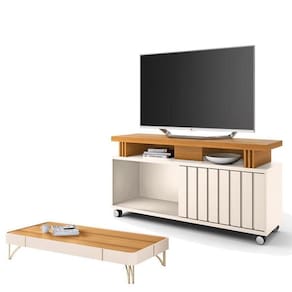 Rack Bancada Rivera e Mesa de Centro Cadenza Off White Cinamomo HB Móveis
