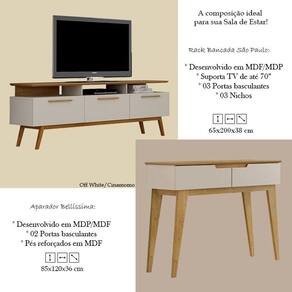 Rack Bancada São Paulo e Aparador Bellíssima Off White Cinamomo - Valdemóveis