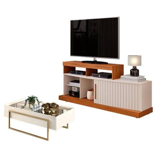 Rack Bancada Scala com Mesa de Centro Suri Freijó Off White DJ Móveis