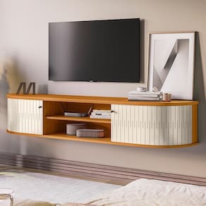 O Rack Suspenso Algarve é ideal para quem busca sofisticação e inovação. Com suas portas flexíveis em MDF, oferece praticidade e um acabamento sofisticado. A porta curva é um diferencial exclusivo da Madetec, garantindo autenticidade. Inspirado no design europeu, possui detalhes curvos no tampo e na base, além dos puxadores em bronze que combinam perfeitamente com seu design. É composto por chapas de MDP de 15 e 25mm. Com 183cm de largura, otimiza o espaço da sala de estar e é ideal TV até 75".
