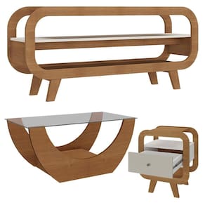 Design e funcionalidade, esse trio é a escolha certa para compor salas com personalidade. O rack de 133 cm une design moderno com bordas curvas, estrutura em MDF 15mm (pés de 25mm), suportando TVs de até 42 polegadas e com 2 prateleiras abertas. A mesa de apoio é feita em MDP 15mm (pés em MDF 25mm), conta com acessório porta USB tipo-A e tipo-C integradas com cabeamento pronto para uso e uma gaveta com corrediças metálicas, além de ser versátil o suficiente pra funcionar como mesa de cabeceira. Finalizando o trio, a mesa de centro traz base curva em MDP 15mm e tampo em vidro temperado de 5mm, garantindo um toque moderno com suas bordas curvas. Todo o conjunto tem acabamento em Tintura UV para melhor durabilidade. Três peças para uma sala com mais estilo e personalidade. Este conjunto chegará em sua casa separado em 04 volumes.