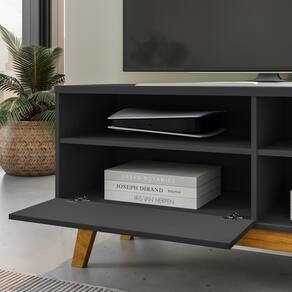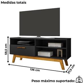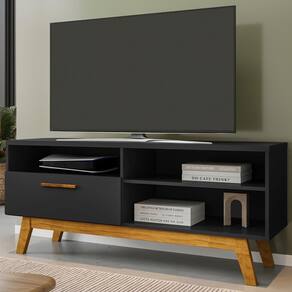 Rack Bancada Paládio, funcionalidade com design moderno para o dia a dia. Estrutura em MDP (12/15 mm) com acabamento em pintura UV. Possui porta basculante com dobradiças metálicas e puxador revestido (MDF), nichos, passa fios e pés em madeira maciça (Pinus). Suporta TV's de até 55 polegadas com segurança. Este produto será entregue em 1 volume.